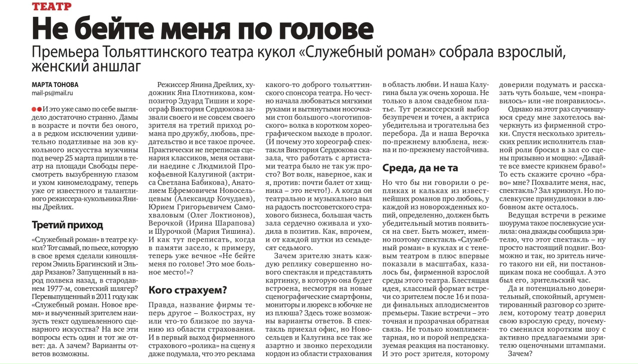 Премьера Тольяттинского театра кукол "Служебный роман" собрала взрослый, женский аншлаг...